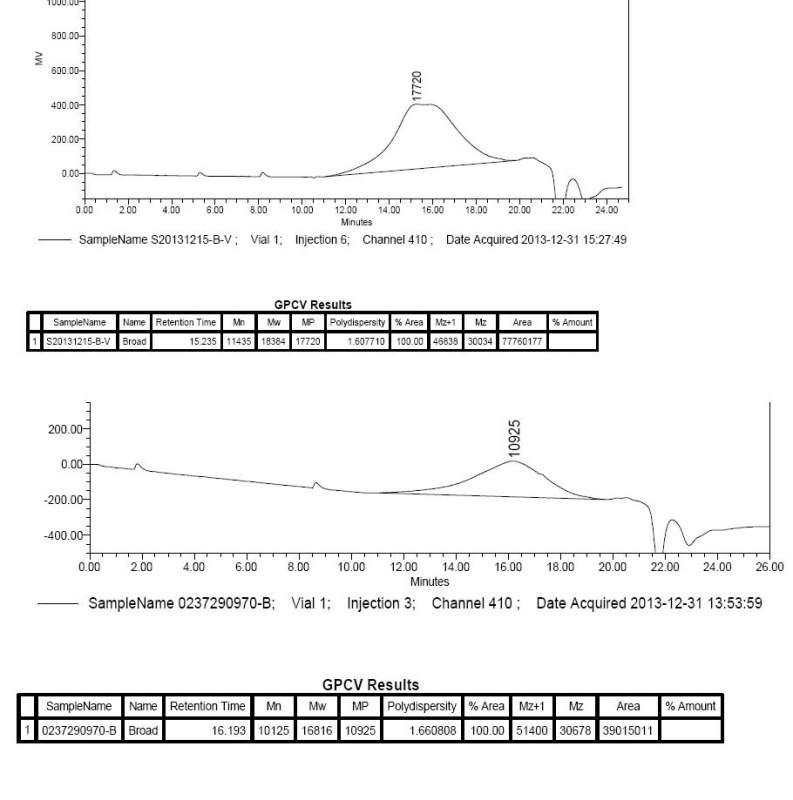 第一个样品是我做的聚合物,第二个是进口的对照品,样品是聚丙烯酸树脂(GPC是用PS参照),预计样品的分子量在10-15万,但是做出来Mw16000~18000,老师说是PS参照的原因。