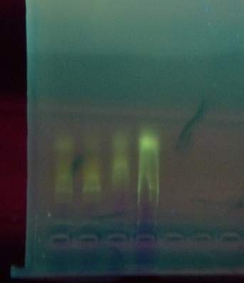 用的方法为2.细胞破碎:取 1 管菌体沉淀用 600μl 细胞裂解液充分悬浮,然后在液氮30s和 65℃水浴30s中反复冻融 5 次,37℃水浴 10min ;加 30μl 溶菌酶(50mg/mL),加入 30μlSDS 溶液(10%),37℃水浴 30min ;为什么提出的条带是这样子的。 总DNA条带 |
