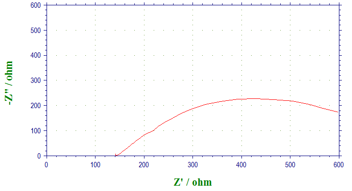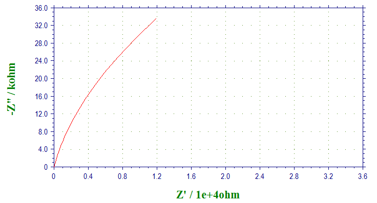本人做了些隔膜,并做了交流阻抗测试结果如图1-5.测试装置为中间一层隔膜,两边电解液相同,两根铂网电极。起始电压为开路电压,0附近。扰动电压5mV,频率100000——0.1Hz.