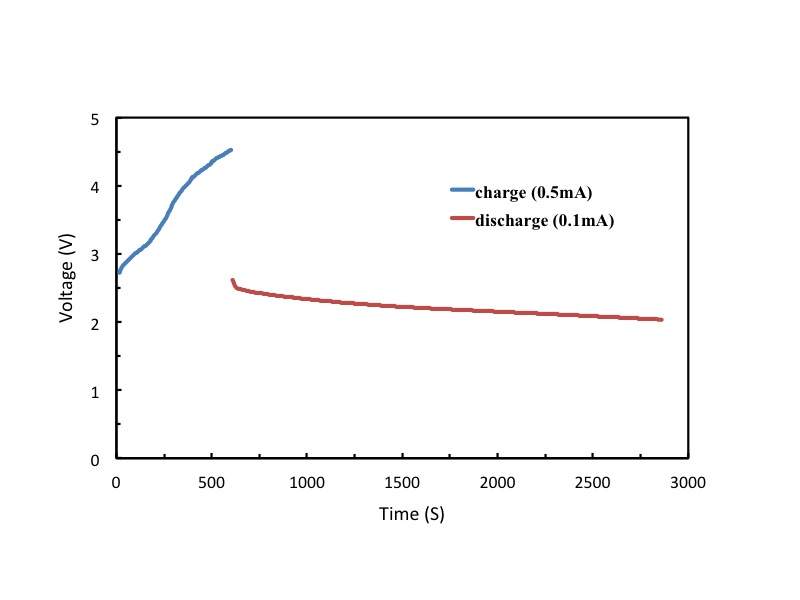最近试着做了一个2032扣式锂电,正极钴酸锂,负极石墨,得到的充放电曲线看不明白,请大家帮忙分析下为什么充放电曲线电压差了那么多?我是用AutoLab的计时电位法做的测量,充电是0.5mA放电是0.1mA。还有一点奇怪的是我设置的截止电压是4.5v,但是充电截止后用万用表量电压只有2.5左右,这是什么原因呢?