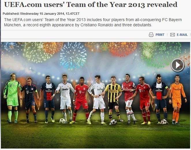 欧足联2013最佳阵容:C罗携拜仁4将领衔 梅西落选