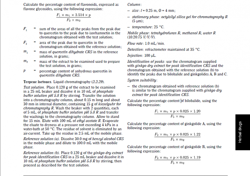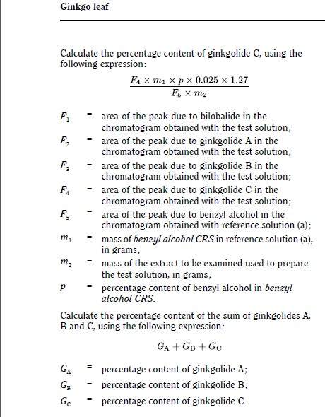 欧洲药典,银杏内酯,计算公式求解释已有1人参与