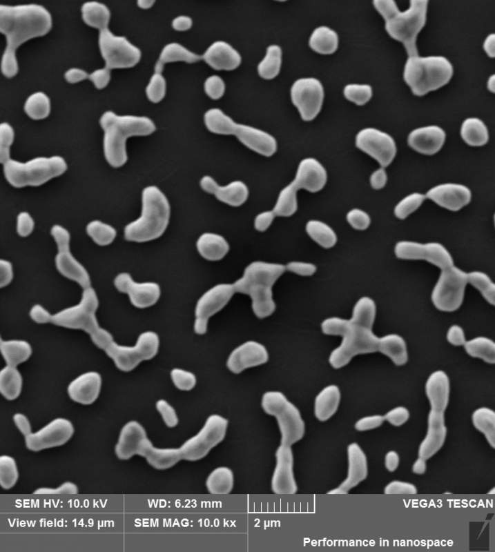 上图是我用硅/二氧化硅/50nm镍膜上进行RTP快速退火后的镍膜的SEM图像,温度900度,图中亮的部分应该是镍,但是不知道为什么镍变成这个样子了,按理来说镍的熔点很高,不应该融化变成这个样子啊,不知道有人知道这是怎么回事吗? 是在高纯氩气氛下进行的退火。 退火前的镍膜SEM图如下: [ Last edited by dignity321 on 2014-1-19 at 15:56 ] |