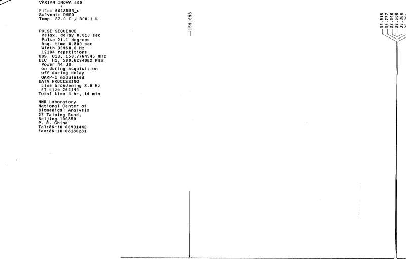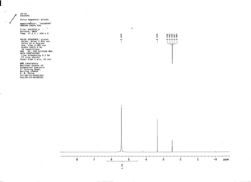 遇到很迷茫的谱 氢信号只有5.43 碳信号只有159.7 溶剂氘代DMSO 是大量的无色针状结晶 纯度很好了 可是我不知道这是个什么东西 求大侠指教 这种是什么化合物 H 001.jpg C 001.jpg |