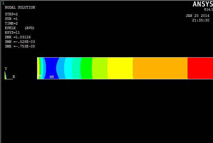 在某一条边上加载均匀压应力,该条边被划分了好几个单元,对该边所有单元施加均匀压应力:sfe命令 发现结果有点不对,该边两头的节点力估计只有中间节点力的一半,导致位移场显示两头的位移小,中间的位移大。 我该如何施加均匀压应力? |