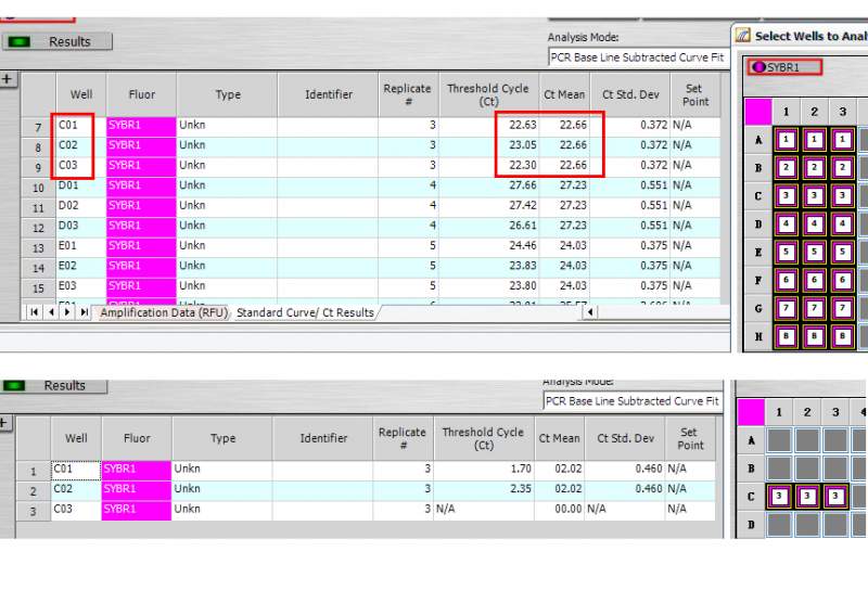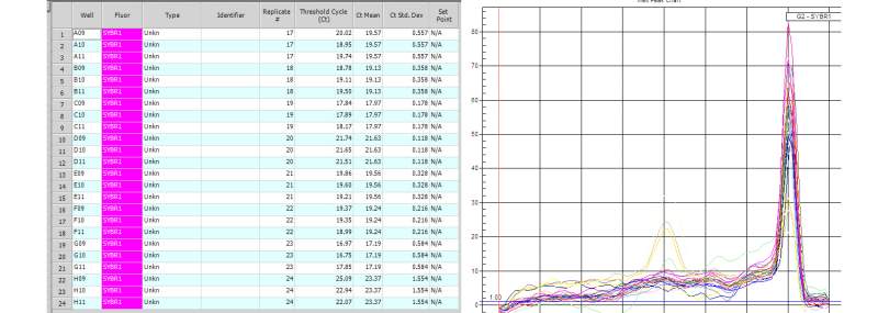 下面依次是目标基因、内参基因1、内参基因2的数据和峰图。