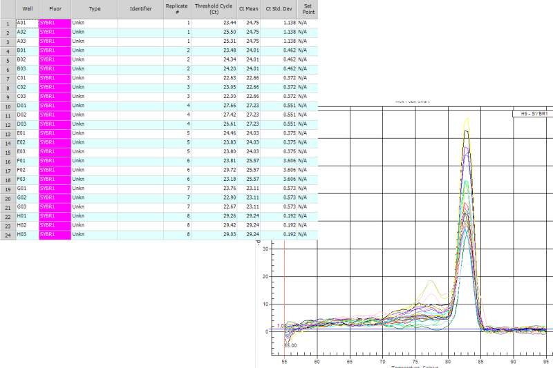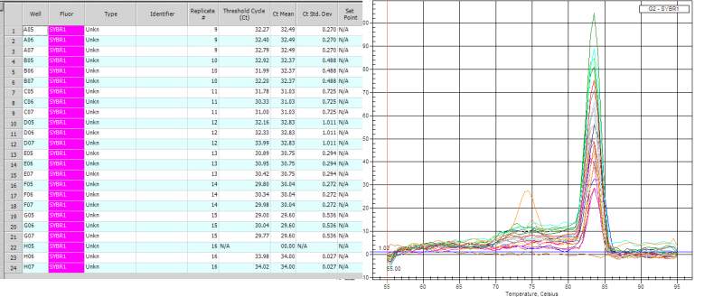本人荧光菜鸟一枚,今天第一次做,求各位虫友帮忙分析熔解曲线的数据。