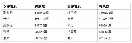 詹皇力压KD成全明星票王 科比连续16年入选首发
