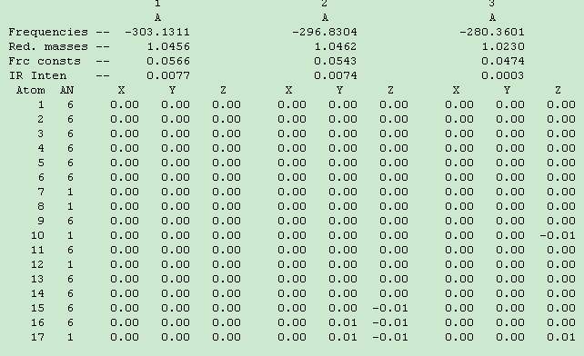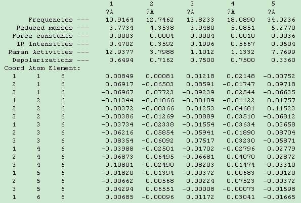 计算个震动模式的频率,想得到的输出文件如图一, 但是用freq关键词计算得到的输出文件中频率部分如图二,也就是少了Raman Activities 和 Depolarizations还有下面的 Coord Atom Element:部分也不大一样 哪位高手知道用什么关键词能得到图一的输出文件? 图一.jpg 图二.jpg |