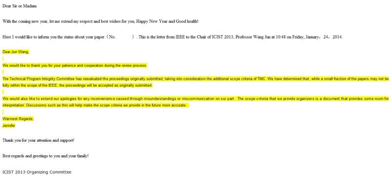 ICIST2013入库终于有了回音 已有3人参与
