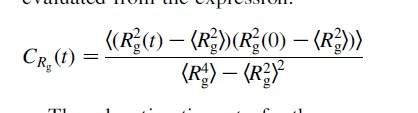 尖括号是指计算样本平均的均值,Rg在这里意义不明,因为同时出现了Rg(t);除非把Rg默认为遍历的随机过程的样本均值,但是这样公式里面就不应该再给Rg加尖括号了;按一般随机分析公式的表达,楼主给的公式应该是错的,比如第一个公式分子项中第一部分应该为Rg(t)^2-<Rg>^2,这样就类似中心化的方差计算了,整个分子项部分才和相关函数计算表达式接近。 总之,公式部分物理意义不明甚至错误的话,足够让审稿人直接拒稿了。 |