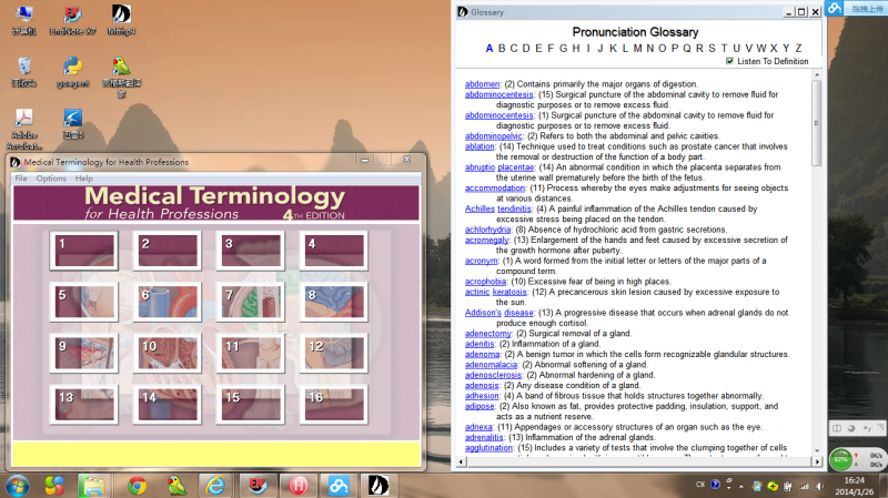 [医学术语.专业版本.含各种练习和英语解释朗读]---------百度云盘公开链接:http://pan.baidu.com/s/1gd5NCmn 医学英语专业版本.PNG ps:医学英语词汇闪电式记忆法.pdf 灵格斯词霸,一款强大的多国语言翻译软件,话不多说…… 作为一枚小小医学生 ,英语水平还有限,想读外国文献怎么办呢?别急~~医学生是这么用Lingoes滴~~下的全是医学辞典/骨灰级(~ o ~)Y Lingoes.PNG 具体安装见http://www.lingoes.cn/zh/dictionary/dict_use.php 至于发音,不要听它自带的TSS合成语音,不纯正,强烈推荐“韦氏142000个单词语音库高清版本” 大是有点大但非常适合听力与口语标准的养成! 语音包安装方法见http://www.lingoes.cn/zh/translator/speech.htm 往下拉虽然有下载地址,但好像下不了,可以到我云盘下---------http://pan.baidu.com/s/1eQkQUH0 灵格斯屏幕取词翻译很方便的,支持Chome等多种浏览器取词插件,pdf阅读器也可直接取词哦~~ 今天刚发现了Babylon的一个“神奇功能”,在手机上看鲜果阅读器RSS的时候偶然发现的,遇到不懂的英语单词复制一下,它就立即跳出来,几秒钟在下拉菜单里显示翻译出来了,因为是联网查词,几乎所有医学专业术语它都能查出来,也正是因为只能联网查,对于离线用户就没此福利了… 其他手机取词翻译不太清楚,不过听说国内的有道和金山词霸现都推出了手机取词功能,但也好像要几十M吧,相比之下国外的Babylon就小巧轻便了许多 另外背单词用百词斩(移动手机端)、沪江开心词场(PC端)等都是不错的选择~ 练口语推荐爱卡微口语icard(移动手机端)和Abobo(PC端),前者用来听,后者用来练 说到底,多看医学文章,单词自然记住了,缩写难记就记全拼,注意听发音也很重要哦! 纯手打,不容易,第一次发长帖,对我来说已经很多了,分享交流经验,大家相互学习![ Last edited by Takano on 2014-1-26 at 18:37 ] |