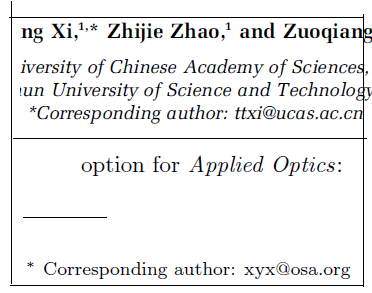关于 JOSA B revtex模板里面通讯作者的邮箱位置