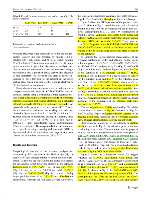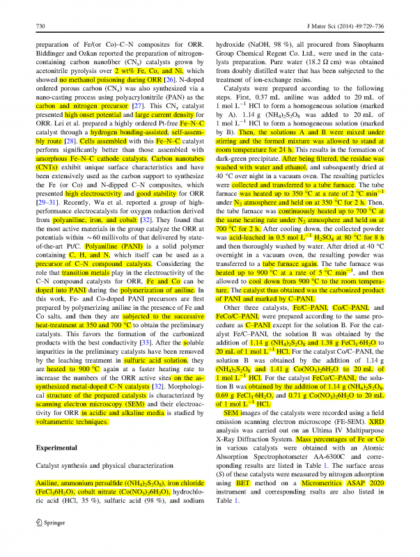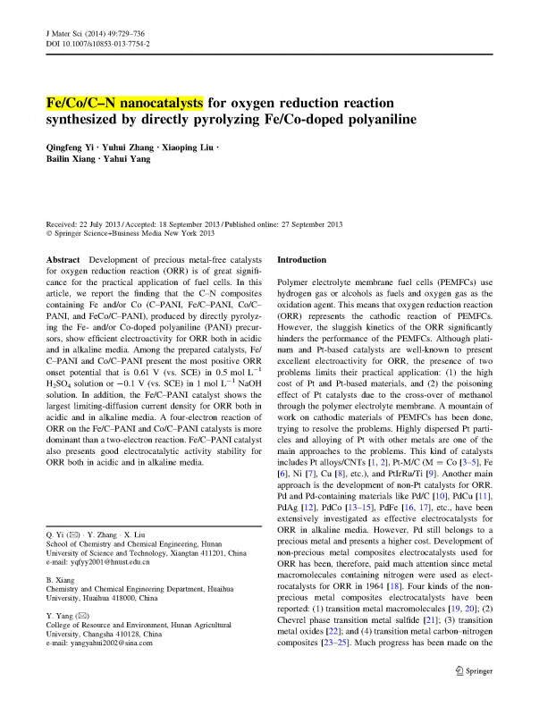 Fe/Co/C-N nanocatalysts for oxygen reduction reaction