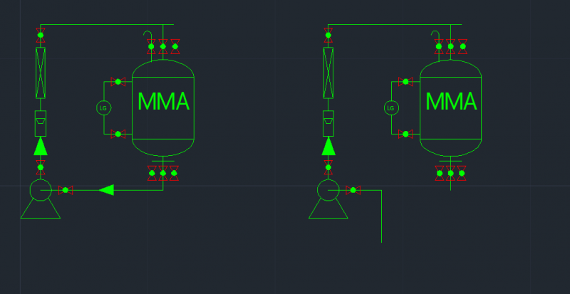 我知道可以碱洗和过碱性氧化铝柱这两种方法,做实验可以碱洗,但是工业上碱洗会造成很多污水(颜色深、气味难闻),设备多,操作麻烦,所以选过碱性氧化铝柱,但是没有经验,请有经验的虫友介绍一下,不胜感激。 问题: (1) 1吨的单体MMA、EA、BA需要多大的碱性氧化铝柱? (2) 是一次性过柱还是单体在储罐里然后用泵打循环几个小时?比如下图:(左边还是右边的操作好?) |