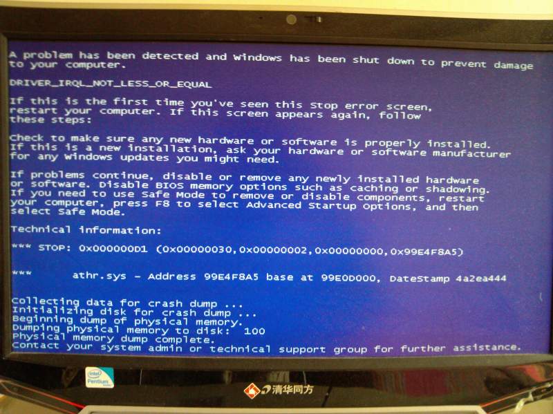 最可能的原因:系统驱动故障 Xp/win7开机按F8选择最后一次正确配置,重启后若能正常进入系统问题解决,依然蓝屏的话重启按F8进入安全模式,重新安装驱动 可能的其他原因: 1.系统开机选单BIOS设置错误:开机按F2(联想)/ESC(华硕)/F12进入BIOS设置,找到start model,win7设置为ACHI/XP设置为IDE,重启即可 2.杀毒软件互杀:这种情况可能是新近安装过两种以上的杀软/防软不兼容,解决方法是开机按F8进入安全模式,“开始”-“运行”-键入msconfig-“确定”-进入启动项选择-取消所有杀/防软自动启动(将启动项前的勾去掉即可),重启,在控制面板中卸载多余的安/防软 3.硬件故障:显卡/硬盘接触不良或松动,解决方法:copy蓝屏代码到微软官方蓝屏查询平台查询故障原因猜测产生故障的硬件部位,拆开笔记本后盖拆卸相应硬件并重新安装即可 [ 发自小木虫客户端 ] |