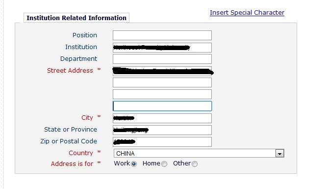 EES 的投稿系统把我弄晕了 上传 Cover Letter、Manuscript、Highlights 自动生成了一个 SUBMISSION 现在问题来了, SUBMISSION里面有一项(Corresponding Author's Institution:)是空着的,在投稿信息里没有找到对应的填写位置 这是投稿作者信息,黑色部分是填写的了 求教各位有经验的 告诉一下应该在哪里填写...多谢 |