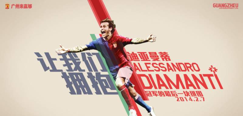 恒大官方宣布迪亚曼蒂加盟 转会费690万欧签3年