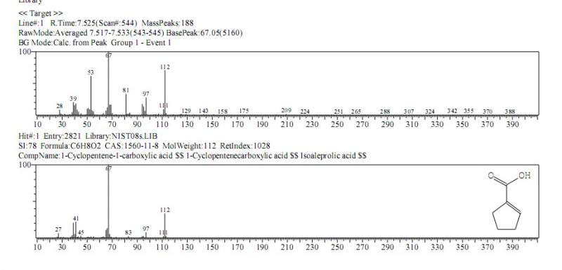 第二张:所测样品在7.52min的峰,进行谱图库搜索的结果匹配