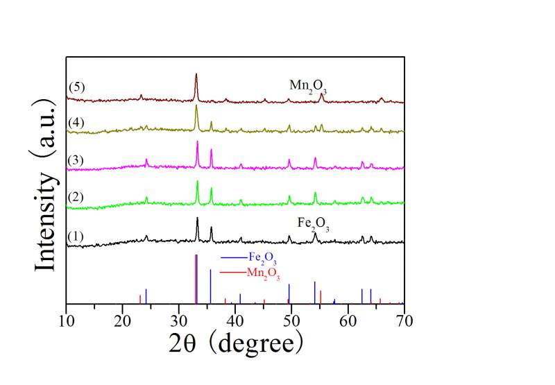 我在Fe2O3的制备过程中掺了Mn,掺杂量少的情况下,得到的XRD谱图和纯的Fe2O3看上去没什么区别,附图中的1.2.3,掺的量多时就会有Mn2O3的峰,附图中的4。产物的颜色随着Mn的含量逐渐变黑。可是怎么样分析含有少量Mn的XRD谱图呢(1.2.3)? 初学者,急用,求各位大神帮忙啊。 Graph1.jpg |