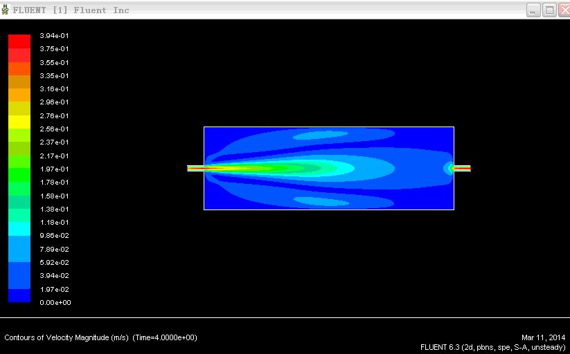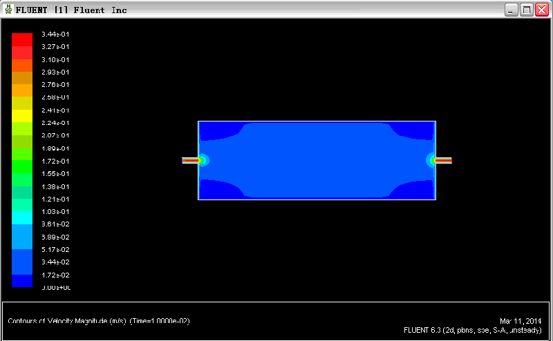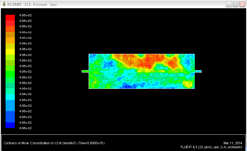 仿真将C2H6抽入容器的瞬时浓度分布,我用非定常组分输运模型(不反应)动画模拟的,速度入口C2H6质量分数设置为1,但是动画回放浓度图1 第一帧就不太对,之后就类似图2,还不是对称的。