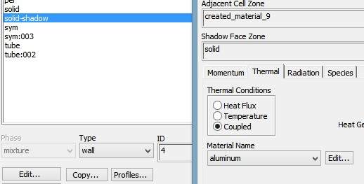 我想在FLUENT中做空调翅片的模拟,需要做热固耦合,就是翅片与空气接触面在边界条件里设置出现-shadow(如下图所示),以前在gambit是用体分割实现的。 现在ICEM中是怎样实现的呢?还是要配合其他软件实现的呢? 这样能量设置页面显示coupled,除了在gambit中实现,还能怎样实现? 这都困扰好久了,各位大神,求助啊 ![]() ![]() |