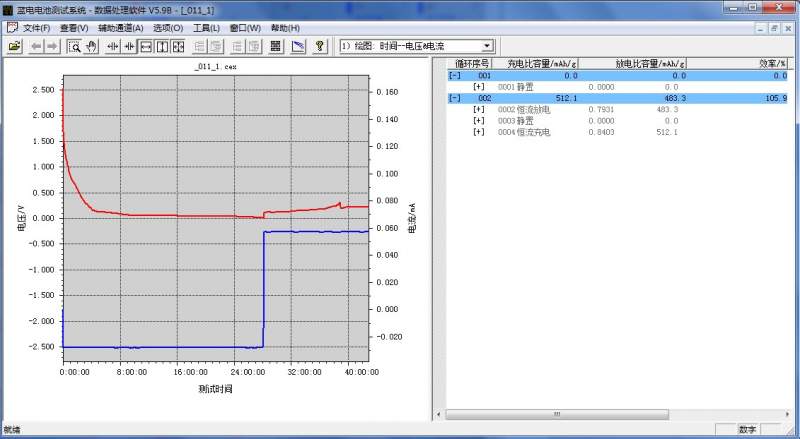 出现这个结果我就直接停止了,那个电压下降时在充电的后八段出现的,理论上应该是充到2V进行下一个循环,现在就是这样只充电但是电压上不去了...