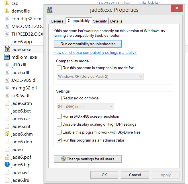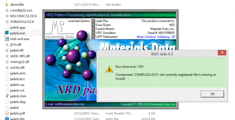 本人是在小木虫上面下的JADE 6.5, http://muchong.com/html/201205/4527533.html 装了之后,一打开 就是这个 本人尝试各种改兼容性,改以管理员身份运行。 不能解快问题。 也尝试各种导入comdlg32.ocx, 导入成功,但也不能解决问题。 本人的电脑是64位win8系统。 弄了两天了,现在欲哭无泪,求帮忙! |