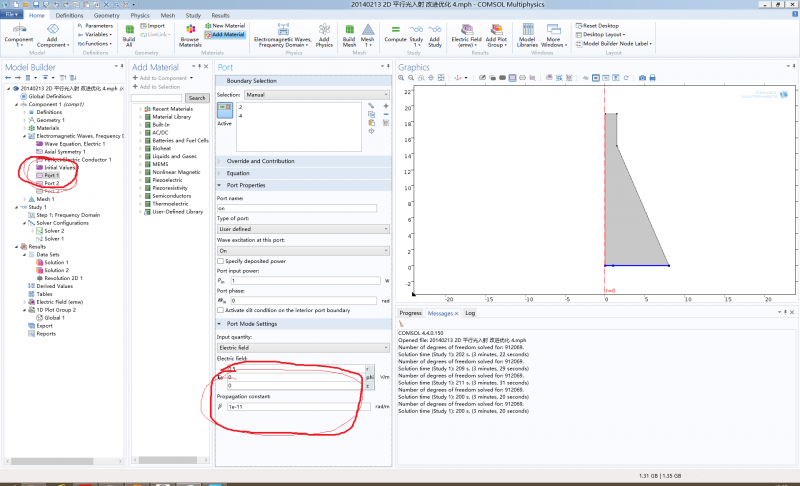 各位大神好, 小弟仿真一个太赫兹波段的锥形波导,入射端面,入射的port想用平行光入射,可是不知道如何设置入射的port, 我觉得可能是在传播常数那里设置什么,下面附图, 小弟实在才疏学浅,跪求各位大神指点一二,不胜感激! port.png |