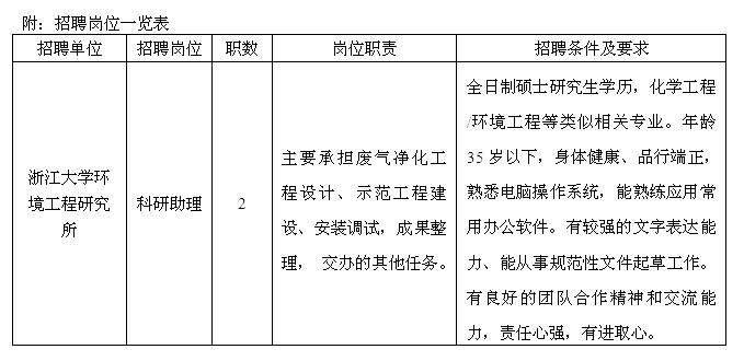 浙江大学环境工程研究所项目聘岗招聘启事