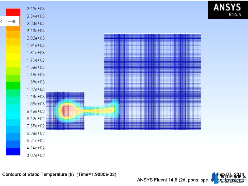 使用fluent软件模拟了氢氧混合密闭空间燃烧的问题,1大气压,初始温度300k,氢氧质量分数分别为0.02815,0.2255