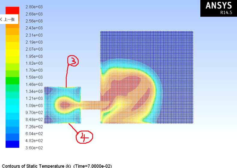 你的时间步长设为多少?这些结果是点火多久后的?最后容器内的压力上升到多少?我最近也遇上跟你差不多的问题,只是我点火后火焰传播很慢,可文献上说一般在点火后一百毫秒左右,火焰基本就能传满整个容器了,变爆燃/爆炸,压力上升至原来的7倍左右