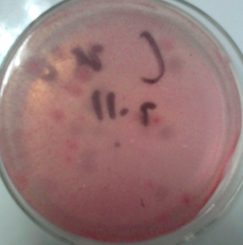 这是检测我们公司几款样品的实验结果,目的是检测真菌总数是否在国标范围内(<100),用的孟加拉红培养基,有很多小红点,不知是不是真菌,有点像红色褪色的赶脚(因为忘记拍正常状态的平板了,第五张是网上搜的图,我做的正常没长菌的平板也是这样的,颜色均匀,没有任何红点,作为对比):