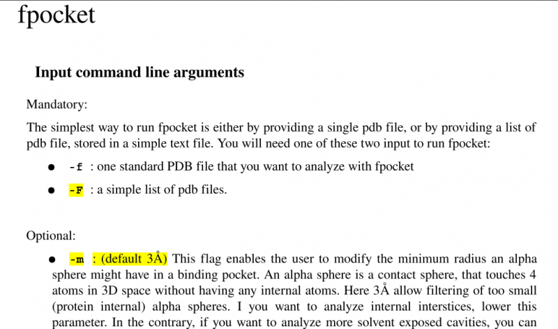怎么将 -m 用到命令当中去? 我在终端中输入的是fpocket -f sample/1AO0.pdb 这是使用的最简单的命令。而要将optional中的-m用上该如何输入? Unnamed QQ Screenshot20140218151744.png |