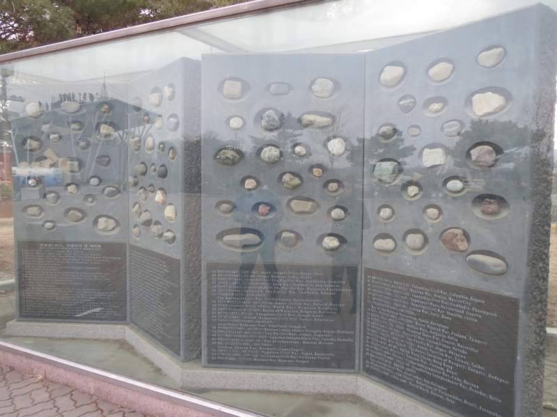 Stone Wall, each stone represents the place where's been a war,and there r 4 stones from China--Beijing, Shanghai, Hongkong and Taiwan.