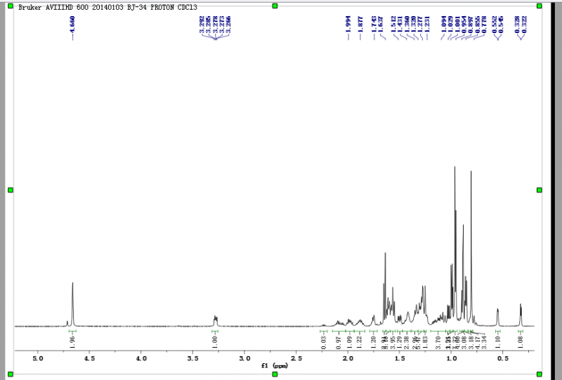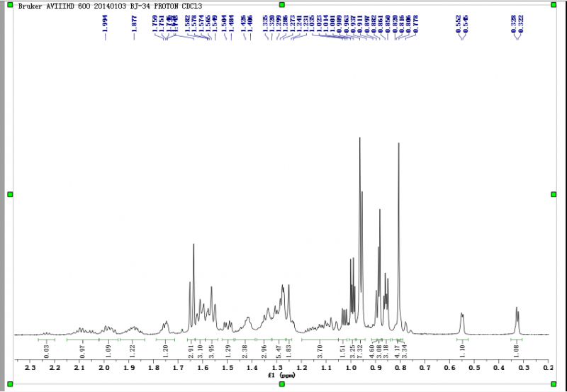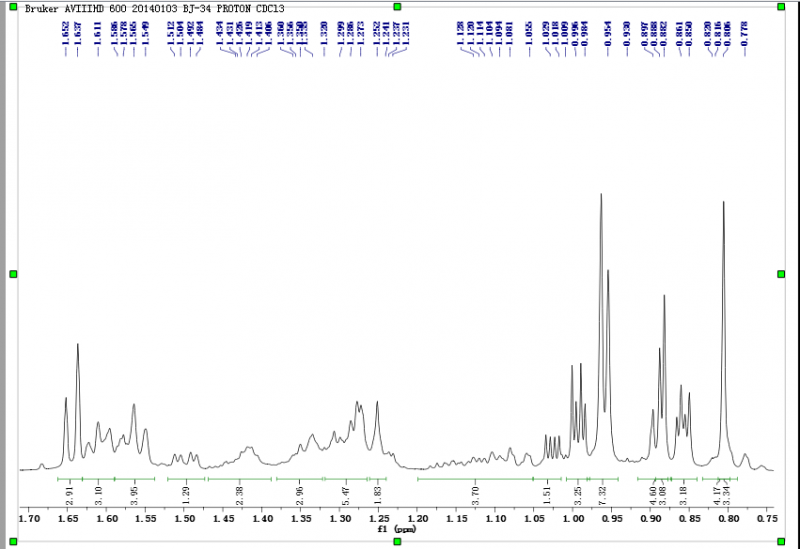 求大侠帮忙看看,我只看出来了是一个菠萝蜜烷型的三萜,但是我 觉得甲基的信号好少哦,还有在化学位移1.0,0.85两处的峰我不知道该如何去归属的,求指点! 捕获1.PNG 捕获2.PNG 捕获3.PNG 捕获4.PNG |