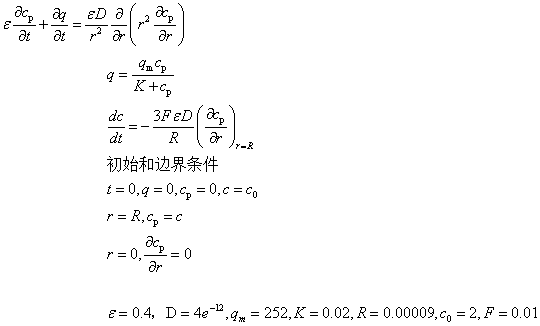 2.有如下方程组(附件),请高人帮忙,可以用pdepe命令求数值解吗?想模拟出一条c关于t的曲线,与实验测得的c-t曲线对比