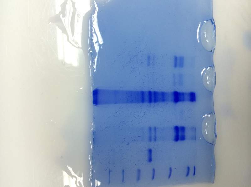 2.复性蛋白可能存在理化环境改变后,蛋白结构改变,导致分子断裂的情况,这个正常。在你看来极淡蓝色是不是你表达的蛋白有金 ...