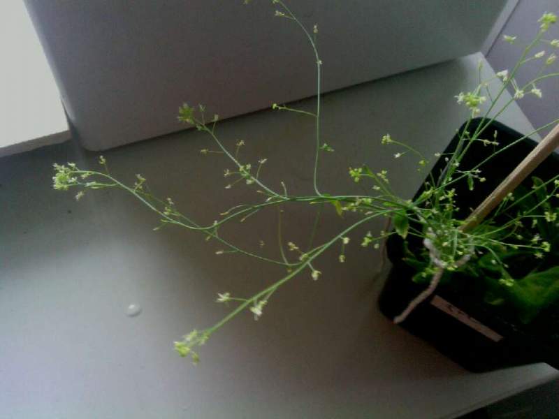 转拟南芥的T1代苗,部分表型与预想的差别很大,还有一些花而不实,,,做了六个基因,都有这样的现象,,小硕一枚不知怎样对这些'奇诡‘苗做后续研究 长不大 都长成观赏花了 FF5%G%}4]HW9]GBO4N{9~`G.jpg 无果 弱小,结实低 这种是预想中的 簇生 |