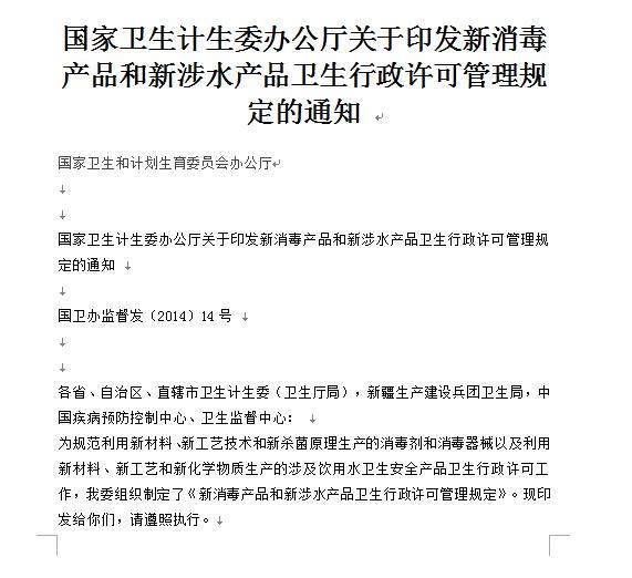 关于印发新消毒产品和新涉水产品卫生行政许可管理规定的通知-2014.2.11