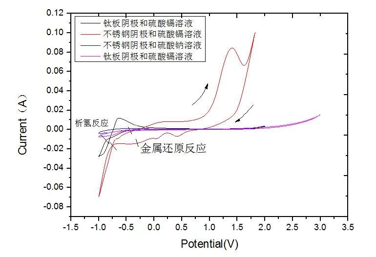 不锈钢阴极和钛板阴极分别在硫酸镉和硫酸钠中的CV.jpg