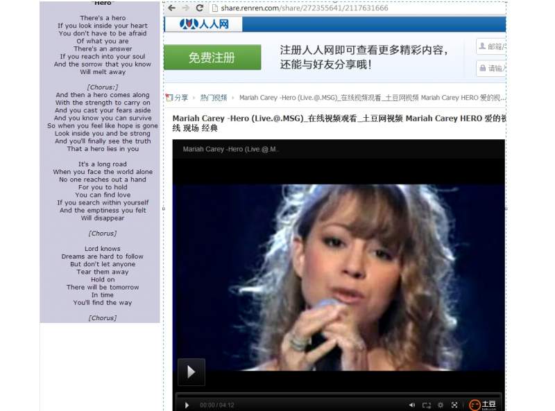 Mariah Carey - "Hero" http://share.renren.com/share/272355641/2117631666 --------------- Whitney Houston - "I'll Always Love You" ---------------- Mariah Carey -Hero (Live@MSG).jpg |