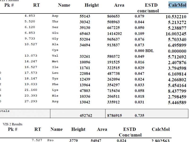 氨基酸组分分析