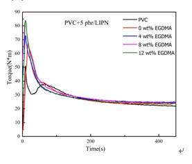 分别加改性剂,1份,3份,5份,当加5份后得到的塑化扭矩便消失了,这是怎么回事,如何解释啊?