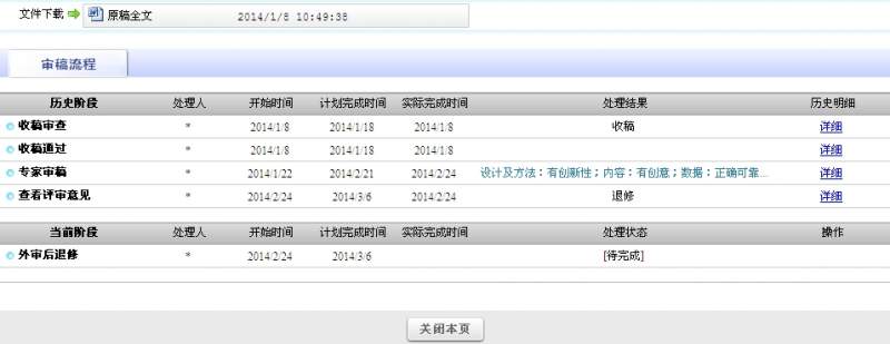 本人投稿《机械科学与技术》这个期刊,外审意见出来了,对文章内容具体没有说明要修改的,但此状态为外审后退修,可是我现在不知道修改什么内容,还有该刊在线投稿系统怎么没有关于提交修改后的相关界面(附图)。求大神解惑!!! KY@PBYXH%D45F_Z[BX(R~{B.jpg |
