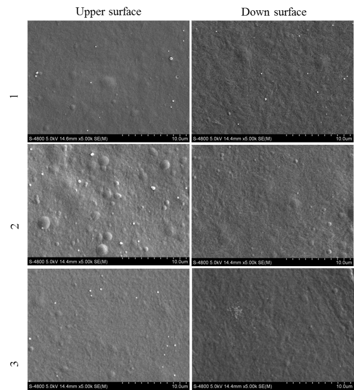 图中是三种不同胶原制备薄膜的SEM图谱 只是胶原来源不同 却出额现图中是差异,左侧是上表面右侧是下表面,第二种出现明显差异,是什么原因 各位求解释,为了这个被老师骂了n次 自己也在大海捞针般查文献,未果。。。 图片1.png |