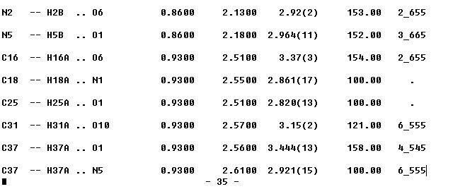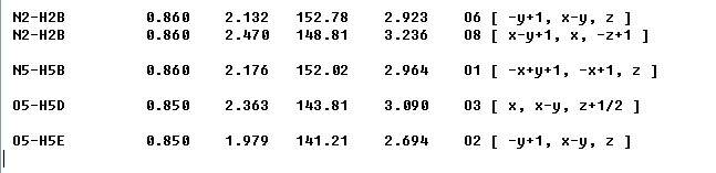 用platon计算了H键,发现和LST中提供的不一样,有明显的O-H…O键platon中都未给出,不知道是何原因