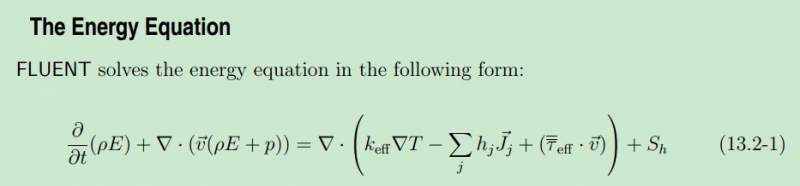 我看到fluent help 6.3文档中,heat transfer这一章说,fluent求解的能量方程是如下形式: