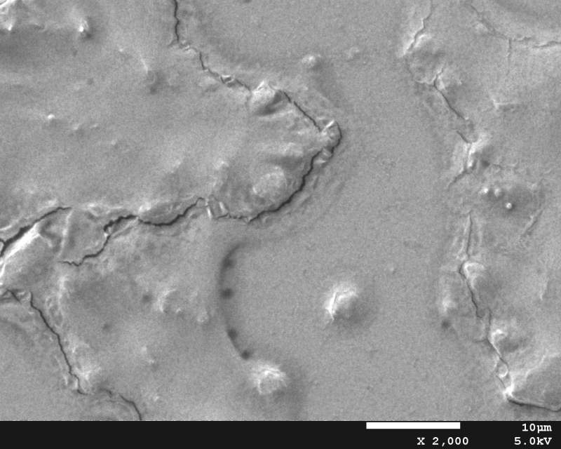 我最近有个样品做了SEM,操作如下:把化合物用乙腈溶解,浓度为10 -5M。超声后把样品滴在玻璃片上,晾干后,喷金 后测试,但得到的图片如下: