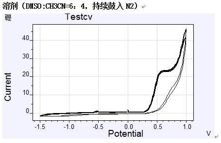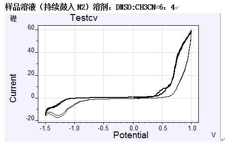 在测染料的HOMO和LUMO,却发现在DMSO和乙腈的混合溶剂中,加不加染料,测出来的图谱结果差不多,不知道怎么回事,求高手指导 玻碳电极为工作电极,铂片为辅助电极,银参比,电解质为四丁基铵的氟磷酸盐